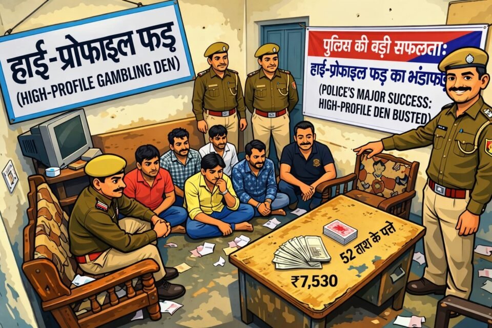 जन-चर्चाओं के बिल्कुल विपरीत, पुलिस द्वारा जारी आंकड़ों ने मामले को हल्का कर दिया है। पुलिस सूत्रों से मिली जानकारी के अनुसार, इस छापामारी में केवल 6 जुआरियों को गिरफ्तार दिखाया गया है। हैरानी की बात यह है कि जिस फड़ को ‘हाई-प्रोफाइल’ और ‘बड़े स्तर’ का बताया जा रहा था, वहां से पुलिस ने नगदी के नाम पर महज 7,530 रुपये और 52 ताश के पत्ते जब्त किए हैं।